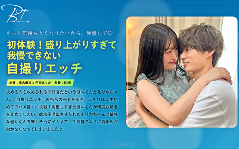 攻めるのも攻められるの好きだという健斗くんとえりかちゃん。「自撮りエッチ」の指令カードを引き、ふたりは人生初めてのハメ撮りに挑戦!興奮しすぎた健斗くんが何度も動きを止めてしまい、欲求不満にさせられたえりかちゃんは敏感な健斗くんを楽しそうにイジメて!?気持ちよさに歯止めが効かなくなってしまいました♪ / 初体験!盛り上がりすぎて我慢できない自撮りエッチ 保志健斗
