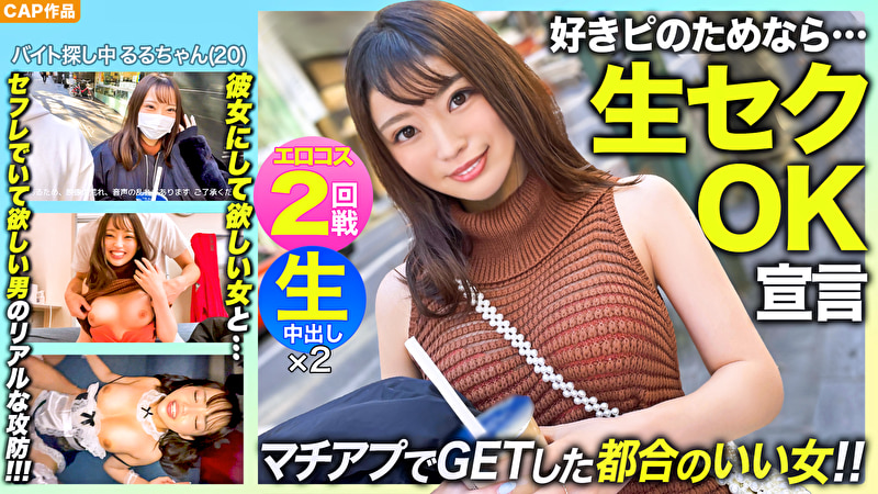 マッチングアプリで出会った【るるちゃん(20)】と3回目のデート。動画撮らせてくれたら付き合うという話をしていたのでカメラを回す。一緒にプリクラを撮り、自宅へむ。「元カレと縁切ったら付き合ってくれる?」と付き合う付き合わないの攻防の末にうまくはぐらかしながらエッチに突入!Bカップと小ぶりながら形が綺麗な美乳を揉み揉み。スレンダーな腰回り、プリッとした美尻を撫でし指マン手マン、クンニでほぐしていくとマコは濡れ濡れ・・・w男の彼女にして欲しい女が魅せる丁寧でネットリとしたフェラが気持ち良すぎて思わず発射!好きな人の精子を口一杯に頬張り【るるちゃん】嬉しそうww「今ピル飲んでるから・・・」と生セクOK宣言!好きな人の生チンを受け入れ「あん!ダメ!!」と細い身体をのけ反らせる!正常位やバックで恋人さながらのLOVE感!立ちバックで今日2発目を中で発射!!エロメイドコスに着替えさせて2回戦!スケべな衣装にチポはギンギンwwバックで突いてると「顔が見たい・・・」とおねだりされて正常位で2回目の中出しwwそれでも勃起は収まらず・・・最後はベロチュー正常位からの顔射フィニッシュ!!自らお掃除フェラもしてくれて大満足のSEXになりました! / 【好きピのためなら生セクOK!!】「SEX撮らせてくれたら考える・・・w」マッチングアプリでGETしたスレンダー美少女【るるちゃん(20)】とエロコス2回戦!!彼女になりたい女と都合のいい女でいて欲しい男のリアルな攻防!!