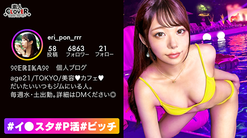 【パイパンマコを責めまくり】イスタ女子達に片っ端から取材と称したDMをしてナンパする企画! 今回引っかかったのはキャバクラバイトをしているえりかちゃん。お金のやり取り無く純粋なセックスが好きだという生粋のヤリマンちゃんから、バズるセックスを伝授していただきましょう♪ 「イヤでは無いです・・・」「挿入れてほしい・・・」「ナマで挿入れちゃった♪」 #イスタ#P活#ビッチB:84 W:56 H:88 / 指が沈む超柔尻+薄ピンク乳首のエロプロポーション抜群美少女!むっつりイスタ女子とエッチな撮影会!ツルツルマコを超接写→勢いでクンニ!オモチャを挿入れると自分から腰を動かすスケベっぷり!かわいい顔してじゅぽじゅぽ音立ててご奉仕バキュームフェラ!たっぷりオイルで全身映えまくりセックスで万バズ確定♪【#イスタ#P活#ビッチ】